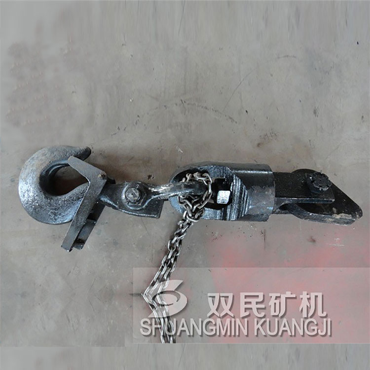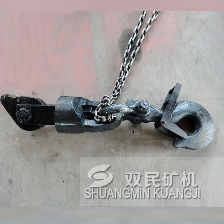 鉤頭及連接裝置,簡稱為鉤頭裝置。 該產(chǎn)品結(jié)構(gòu)簡單,使用性能單一。零件全部由鍛件加工而成,鋼絲繩連接采用了兩種型式,其中5t、7t采用不偏心護繩環(huán),板卡連接;9t" />