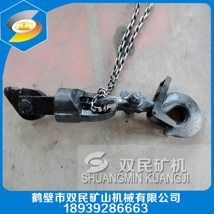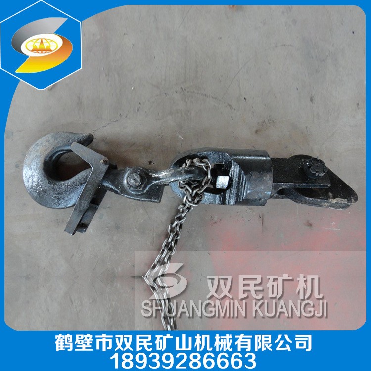 鉤頭及連接裝置,簡(jiǎn)稱(chēng)為鉤頭裝置。 該產(chǎn)品結(jié)構(gòu)簡(jiǎn)單,使用性能單一。零件全部由鍛件加工而成,鋼絲繩連接采用了兩種型式,其中5t、7t采用不偏心護(hù)繩環(huán),板卡連接;9t