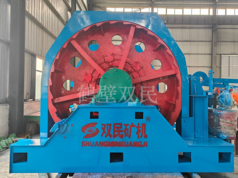 本絞車主要用于煤礦、金屬礦和非金屬礦豎井井筒掘進時懸吊吊盤、水泵、水管、注漿泵、風筒等掘進設(shè)備和張緊穩(wěn)繩,該絞車系雙鋼絲繩懸吊。將減速機上的差動手把放在差動位置,若張緊穩(wěn)繩,可使兩根穩(wěn)繩的張緊力保持相等;若懸吊水管、注漿管、風筒等管類設(shè)備,可保證其被懸吊管類設(shè)備與地面保持垂直的狀態(tài)。如果懸吊吊盤等盤狀設(shè)備,需將其差動手把放在直通位置,才能實現(xiàn)兩繩繩速的一致。