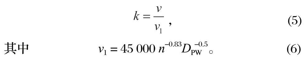 式中:v 為實際運動黏度;v1 為參考運動黏度;n 為軸承轉速;DPW 為軸承節圓直徑。