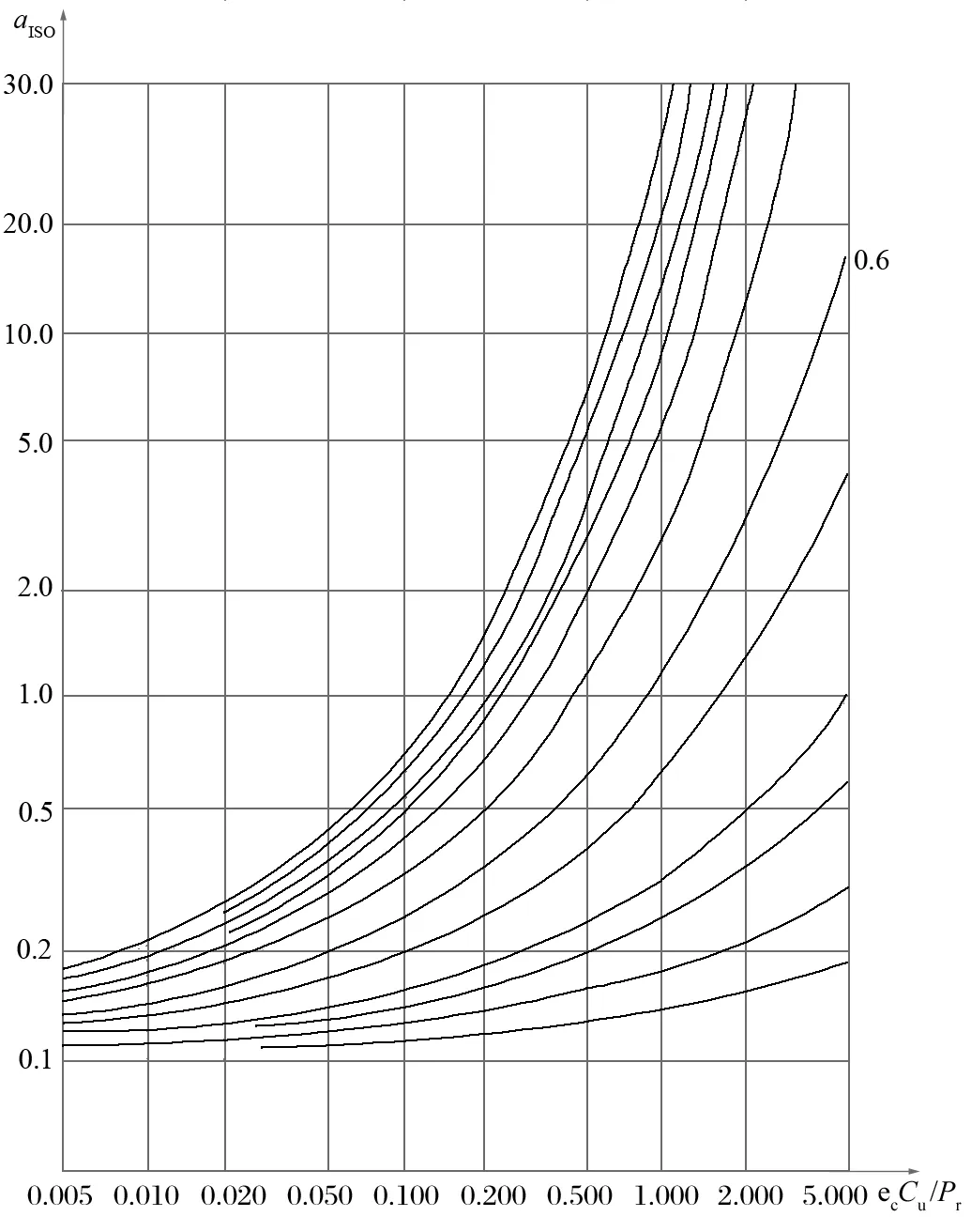 根據黏度比 k 和式 (7),經查 GB/T 6391—2010/ISO 281:2007 中軸承的壽命修正系數(見圖6),可得