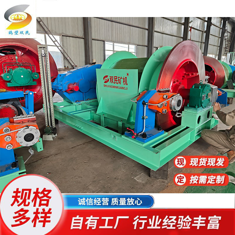 它主要用于礦井中升降人員、提升煤炭、矸石、物料等。其工作原理通常是通過(guò)電動(dòng)機(jī)帶動(dòng)卷筒旋轉(zhuǎn),卷筒上纏繞的鋼絲繩實(shí)現(xiàn)重物的升降。