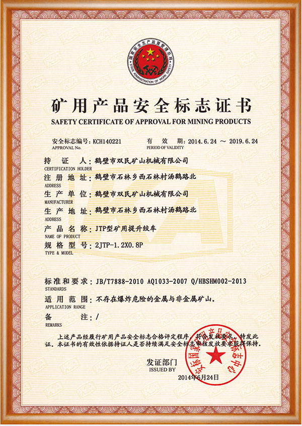 礦用產(chǎn)品安全標(biāo)志證書(shū)